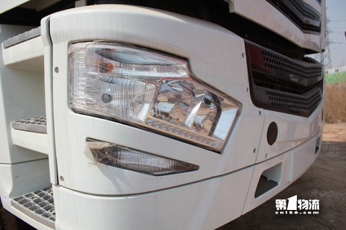 车灯外形虽朴素,材料有门道。这款车的车灯与目前市场上其他重卡车灯相比略显朴素的些,但内置飞利浦灯泡,外壳则采用玻璃材料,避免一段时间后外壳发黄、模糊影响车灯照明效果。