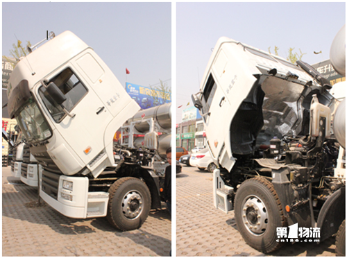 大容量气瓶与电瓶,让车跑得更久更远。这款天然气牵引车搭载两个容积450L天然气瓶,一次充满气候可续驶800-1000公里,轻量化气瓶支架使整车质量降低100公斤。此外,车的电瓶为150AH大容量电瓶,即使是长途运输也可后顾无忧。