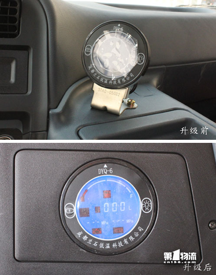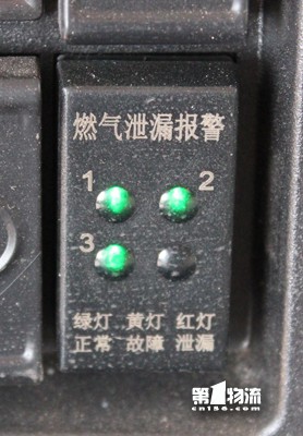 高效电子装置,实时监控天然气使用情况。中控台与一般车型相比最大的区别就在于多出了燃气漏气报警装置和天然气液位电子显示计(以下简称气表),崔经理向记者介绍,当天这款车已经是最新升级版,老款车型的气表和报警装置均独立安装,升级版的内嵌式设计方便司机对这两个装置的观察提高了驾驶安全性。此外,这款气表是专门为车载天然气气瓶设计的液化天然气液量测试仪,融合了当前先进的集成电子技术和智能测试仪器理念,稳定可靠、测量精度高,是目前国内天然气重卡和天然气公交首选液量测试设备。