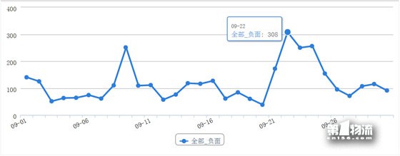 2015年9月份监测期间,负面信息5349条,占全部信息量的4.3%;负面信息根据突发事件严重性及影响范围,经新浪、搜狐、网易等门户网站转载,并通过微博、微信等转发呈现不规律的波动;从日负面舆情来看,9月22日负面信息量最多为308条。
