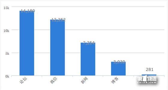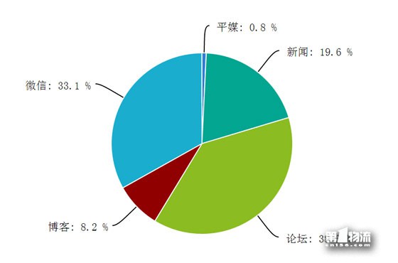 从媒体分布来看,微信和论坛占比较大,并且在各周基本保持占比60%以上,具有传播效应;新闻占比20%左右,第四周占比40.1%,具有信息引导性;平媒和博客各周占比5%以上。