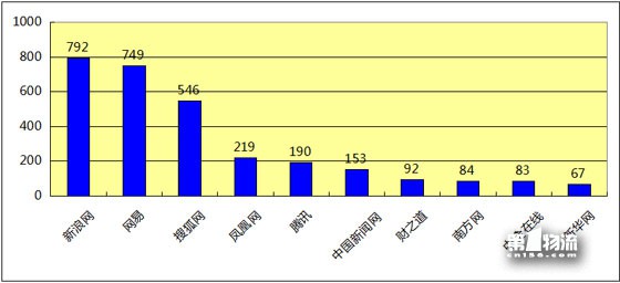 2015年9月份监测期间,监测信息的媒体覆盖排行榜前五家分别为,新浪网792条,网易749条,搜狐网546条,凤凰网219条,腾讯网190。