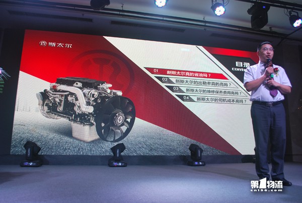 中国重汽商用车销售部新斯太尔品牌营销部经理孙东立介绍新斯太尔亮点