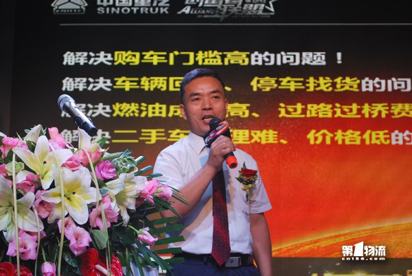 中国重汽商用车销售部总经理助理钟勤介绍现场购车优惠政策