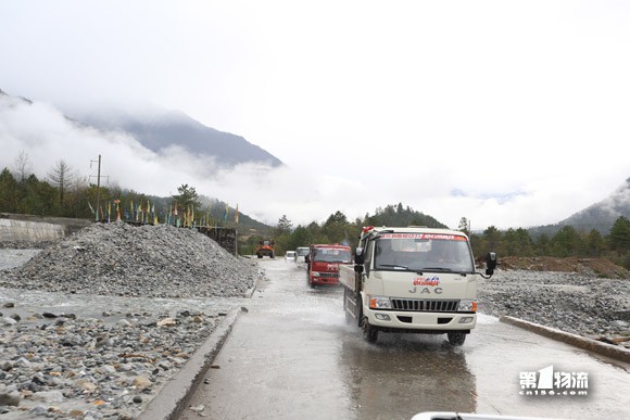 抬头是壮美秀丽的高原雪山,低头则是泥泞不堪的峡路盘山,由于高山冰雪的融化和泥石流的冲刷,导致川藏线上多处地段呈现出泥泞坑洼的路况,车队在翻越宗拉山顶时就遇到了山顶泥石流冲毁道路的情况,随着现场的抢修,道路也逐渐放行,但泥泞坑洼的路面十分难走,骏铃高大车身和迈斯福超级动力的优势再次尽显无疑,顺利地通过了宗拉山地段。