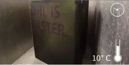 这个“贱贱”的方法关键依靠一种可以随温度显示的墨水,DHL先准备几个大的货物盒,盒子上写着“我们DHL更快哦!”