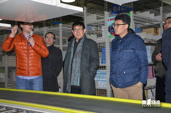 北京九州通医药有限公司物流管理部部长牟宝林为参观企业代表讲解