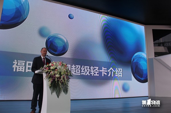 福田汽车集团工程研究总院首席技术专家 Markus Volemer对欧马可EST超级卡车进行产品讲解