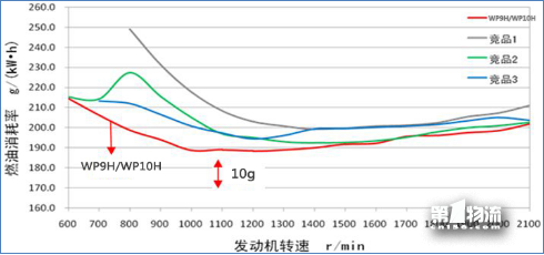 此外,在动力性、经济性、舒适性等指标方面,WP9H\WP10H表现同样非常抢眼。其功率覆盖范围290PS-400PS,极限功率高达700PS;最大扭矩达1900Nm,升扭矩达200Nm/L,极限扭矩2300Nm;燃烧优化设计,同时采用成熟的4气门技术,新型燃烧室与气道的匹配设计,最高2000bar的燃油喷射系统使得燃烧更加充分,最低燃油消耗率185g/(kW·h),同时通过动力总成的优化匹配,整车百公里油耗可降低2L!