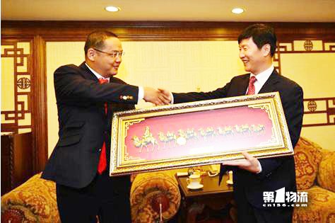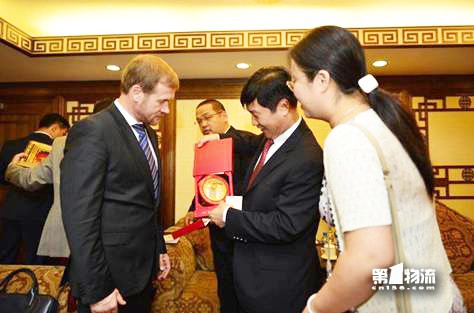 中国交通运输部副部长刘小明向俄罗斯联邦运输部汽车运输局局长德沃伊尼肯·阿列克谢赠送中国特色礼物