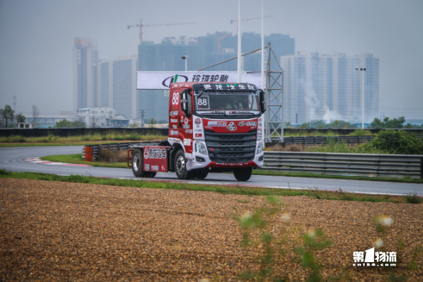 作为国际标准三级赛道,广东国际赛车场密集的直道和复杂的弯角,全面考验了赛车的加速和刹车性能,凭借匹配13L大马力发动机以及优秀制动性能,乘龙H7无疑占据优势!