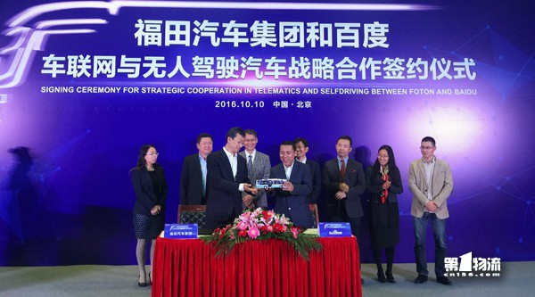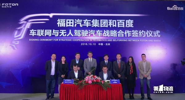 2016年10月10日,福田汽车集团在北京与百度签署战略合作协议,将就车联网、大数据、智能汽车和无人驾驶展开全面合作,共同打造面向未来的智能互联网商用汽车。