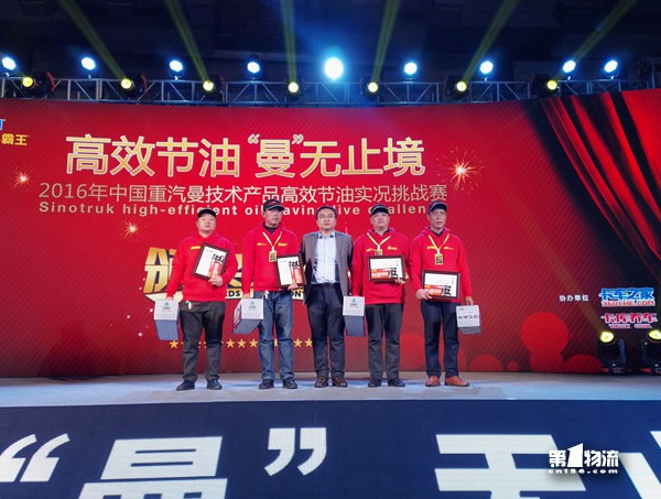张庆虎(图左一)和其他三位参赛选手荣获中国重汽曼技术产品高效节油实况挑战赛“操控达人”称号