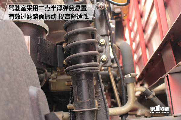 驾驶室采用两点半浮悬置,可以有效过滤路面振动,配合气囊座椅,驾乘舒适性得到提升。