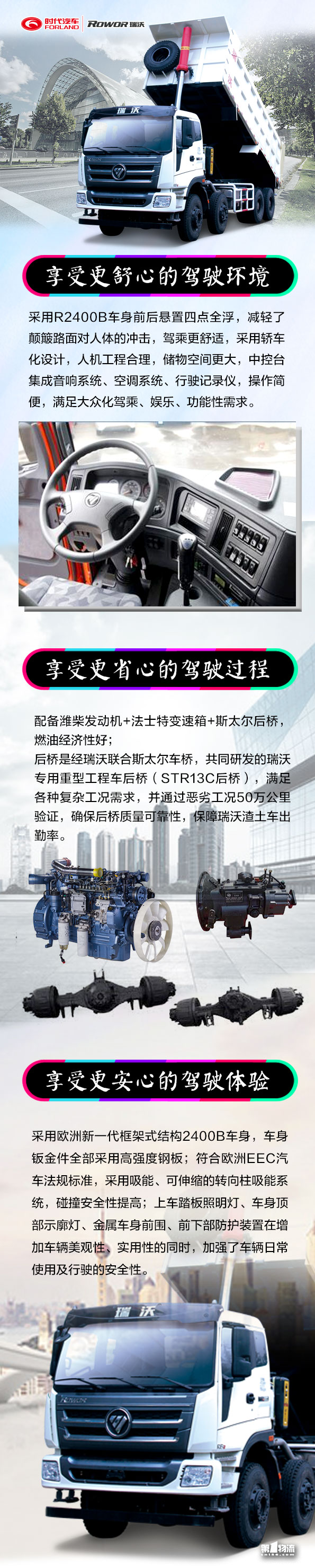 伴随城镇建设建设步伐的加快、城镇拆迁改造项目施工、地铁项目拓展,建筑垃圾清运离不开城市建设的功臣渣土车,瑞沃标准型渣土车无论是从产品设计的升级,还是对制造工艺的不断提升,都值得被您拥有!