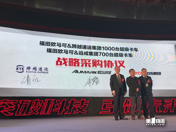 这一强强组合一经亮相就赢得满堂彩。在中国首发现场,跨越速运集团有限公司与远成集团现场分别签署了1000台和700台配装康明斯ISF动力的欧马可超级卡车战略采购协议。