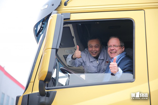 沃尔沃集团总裁马丁·伦德斯泰特先生于参观东风商用车期间试驾东风卡车
