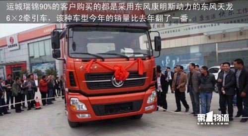 山西运城是我国北方地区的大型煤炭中转地之一,陕西榆林、内蒙古鄂尔多斯等地区的煤炭运到山西运城的河津、闻喜县炼成焦煤后,再送到上海等东部地区。因此,运城有庞大的牵引车市场。运城瑞锦90%的客户购买的都是采用东风康明斯动力的东风天龙6×2牵引车,该种车型今年的销量比去年翻了一番。