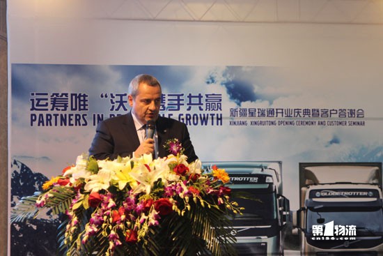 沃尔沃卡车中国区总裁陆博天先生表示:”作为全球领先的商用车供应商,沃尔沃卡车始终秉承着”品质、安全、环保“的核心理念。星瑞通的成立将进一步兑现我们对成为用户最佳合作伙伴的承诺。同时,我们有信心,也有能力为一带一路的发展提供强有力的保障,为新疆地区的用户,区域间以及跨境的贸易往来提供更为高效的运输平台。“