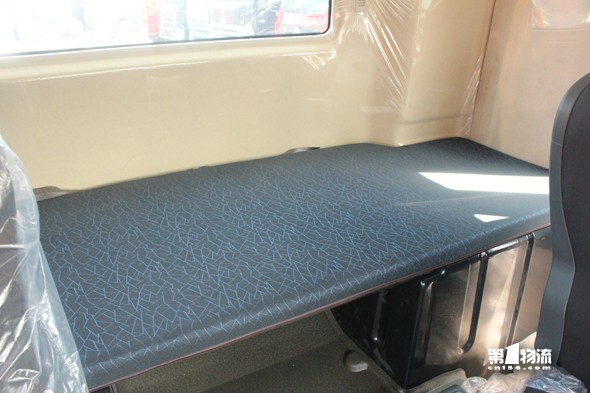 卧铺的设计可以说是一个亮点,头的地方比较窄,中间部分外凸出来,让卧铺变得更加宽敞。这让驾驶员在运营过程及停车休息时可以有一个很好的空间。
