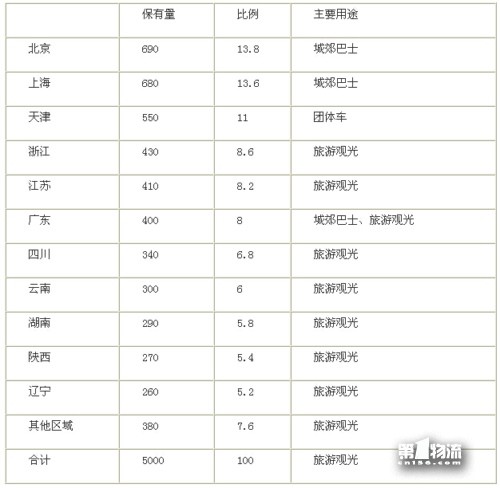 根据调研,目前每年中国客车市场对MPB客车的需求量大约在1000辆左右,约占每年大中型客车市场需求0.6-0.7%的比例。MPB团体客车主要运行在运距为30-80公里的大中城市的厂矿企业之间或大城市的卫星城到主城区之间,目标市场主要集中在浙江、江苏、上海、北京、天津等经济发达的地区。具体地说,MPB旅游客车主要是运行于大城市到郊县的旅游景点之间,运距大约在30-100公里,目标市场主要集中在江苏、云南、辽宁、陕西、北京、四川等具有丰富旅游景点的地区;MPB城市客车巴士主要运行在大城市的主要干线路和城郊线路,运距一般在50-100公里,目标市场主要集中在北京、上海等大城市。