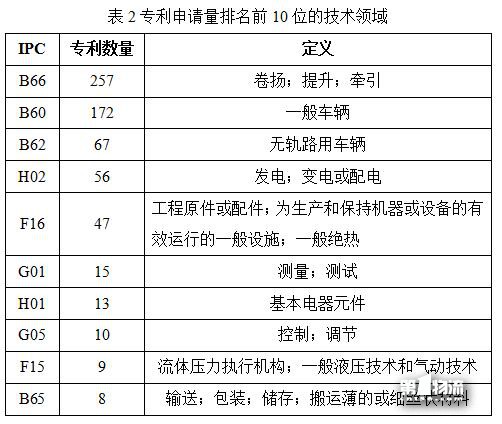 首先,电动叉车专利技术主要集中在B66(卷扬;提升;牵引)领域,专利数量为257件,而2007年—2015年电动叉车的总专利申请数量为615件,故B66领域专利申请数量占到了总专利申请数量的42%,具体如表2所示。