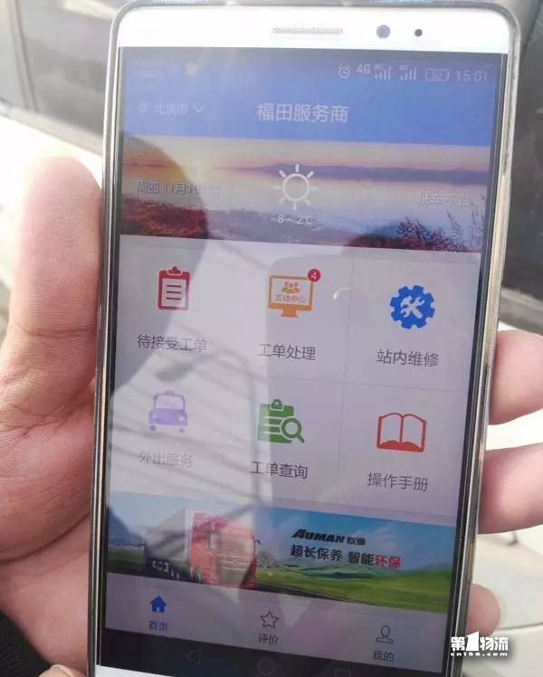 王浩告诉记者,厂家400如果需要安排维修服务的话,他就会收到通知短信,然后,他会联系客户处理,并且在10分钟内在PMS系统反馈。王浩边说边打开“福田服务商”APP给记者进行操作演示,记者翻阅后发现,此APP包含待接受工单、工单处理、站内维修、外出服务、工单查询、操作手册等板块,车辆救援信息属于工单处理模块,出车—到达—开始维修—处理完毕等步骤井然有序。“‘福田服务商’APP使用了半年了,极其方便。”