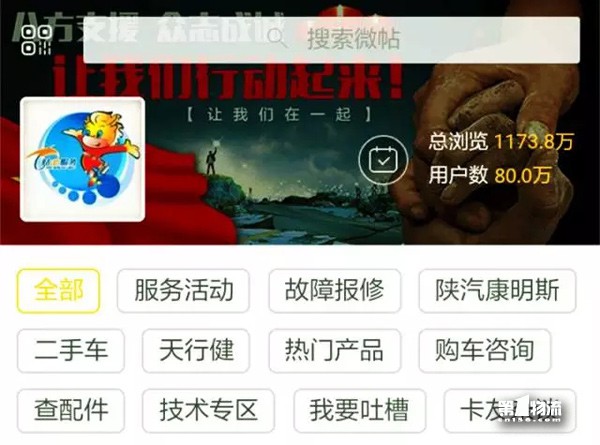 市场是客户需求的市场,为倾听客户心声,打破空间造成的交流壁垒,让厂家与客户,客户与客户间零距离交流,陕汽贴心服务卡友微社区重装上线,并于今天粉丝人数成功突破80万,在这喜人数据的背后,是整个售后服务团队挑灯奋战,奔走市场的汗水、勤奋和付出。