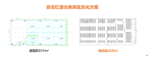 安吉对葡萄酒的库存存储解决方案,也在不断的客户服务中持续升级。早期的库区规划以简单的产品类型划分为主,伴随对商品及需求的进一步了解,安吉进行了库区优化,包括: