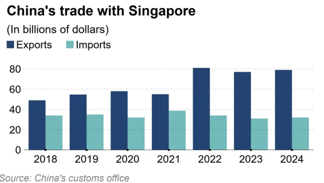 外媒asia times今年7月份报道,新加坡仍然是中国最大的外国投资者和战略合作伙伴,在苏州工业园区和重庆互联互通等项目中发挥着重要作用。