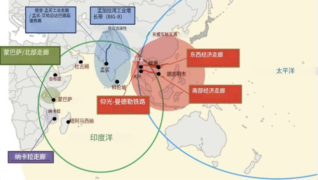 据外媒Konrad-Adenauer-Stiftung报道,2016年,日本针对中国的“一带一路”倡议,制定了“自由开放的印太地区”(FOIP)战略。FOIP旨在引导日本投资流向东南亚最不发达国家。其主要目标之一是支持这些国家亟需的基础设施建设。为实现这一目标,日本大力推动建设所谓的经济走廊。例如,“东西经济走廊”从越南岘港出发,途经老挝和泰国,最终抵达缅甸毛淡棉。这条走廊有助于确保日本进入印度以及南亚快速增长的经济体。此外,日本还建立了“南部经济走廊”,该走廊途经越南胡志明市、柬埔寨金边、泰国曼谷和缅甸土瓦。到 2024 年,大约有 1100 家企业(包括本地企业和外国企业)在这两条走廊沿线运营。