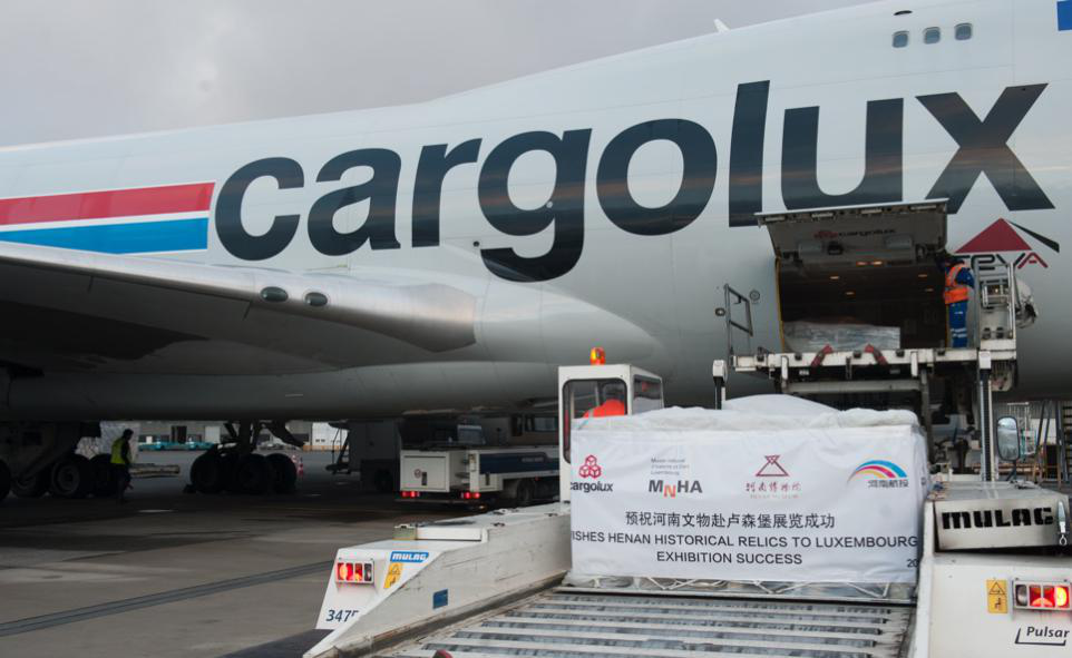2018年11月8日,基于河南省文物局与卢森堡国家历史与艺术博物馆签署的一份文化交流协议,卢森堡货运航空负责珍贵历史文物在郑州与卢森堡间的运输。总计约3吨,装载145件(组)历史文物的集装箱顺利登上卢森堡货运航空公司CV975航班,经过约10小时从卢森堡货运航空中国郑州枢纽到其卢森堡总部的飞行,于今天顺利抵达卢森堡。