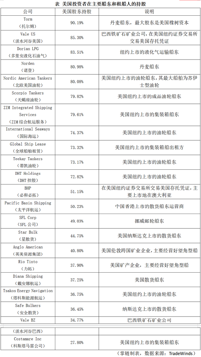 根据航运媒体TradeWinds,大多数上市船东的投资者结构中,美国股东所占比例超过25%,超过中国即将实施的新规所设定的门槛。