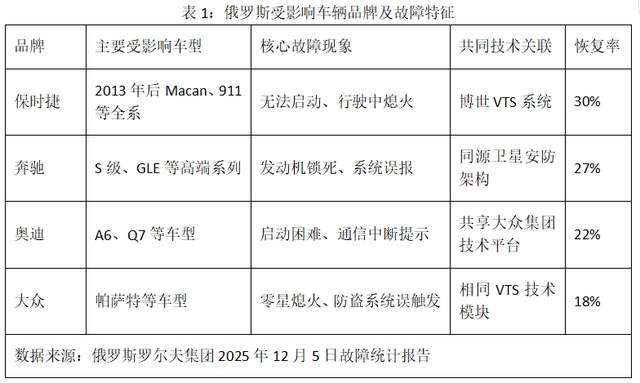 12月2日,根据多家媒体与经销商信息,俄罗斯最大保时捷经销商集团罗尔夫(Rolf)向俄媒RBC表示,11月28日起保时捷瘫痪相关故障报修量激增,12月1日前后在莫斯科、克拉斯诺达尔等多地集中爆发,涉及“数百辆”搭载工厂卫星防盗/跟踪系统的车辆。