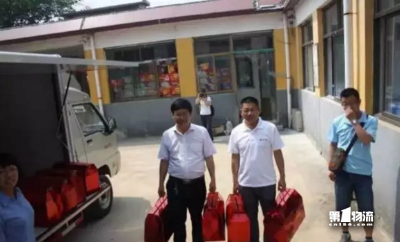 马家庄程副乡长亲自前来迎接,看到募捐物资后程副乡长十分感动。