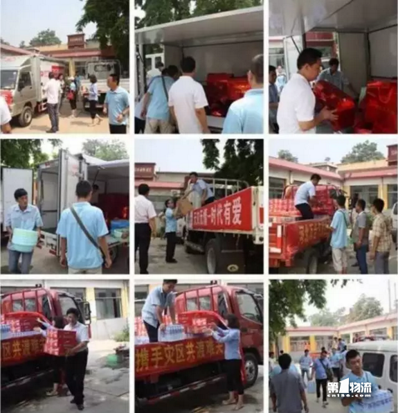 在这炎炎的夏日,工作人员的衣服早就已经湿透了,可心却早已忘记烈日下的酷暑,同志们积极踊跃,分分钟搬完满满四车的救援物资。