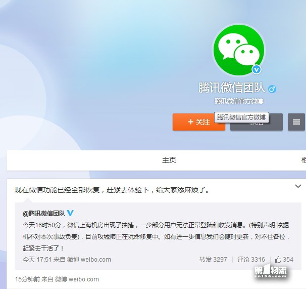 微信团队在微博发布声明称,“今天16时50分,微信上海机房出现了抽搐,一少部分用户无法正常登陆和收发消息。(特别声明:挖掘机不对本次事故负责),目前攻城师正在玩命修复中。如有进一步信息我们会随时更新,对不住各位,赶紧去干活了!”
